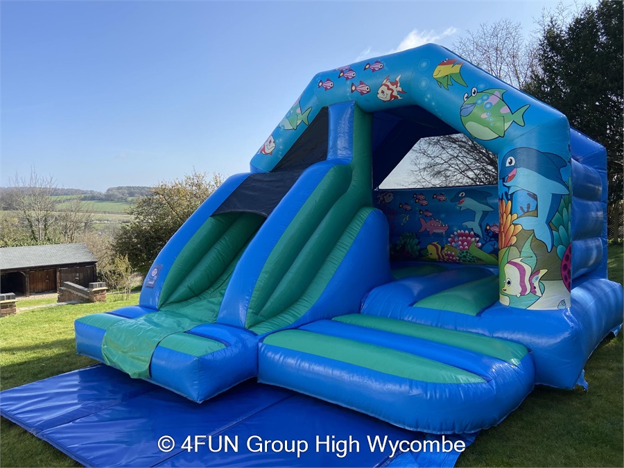 Ocean Bouncy Castle & Slide Combo 15f x 12f hire in Buckinghamshire, Berkshire, Middlesex and Oxfordshire.