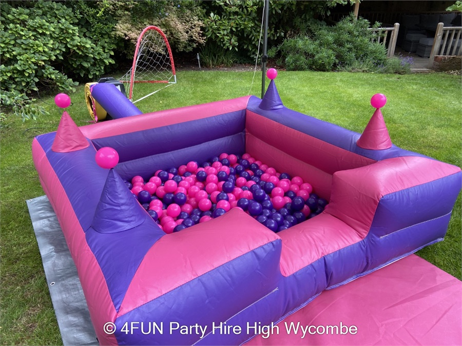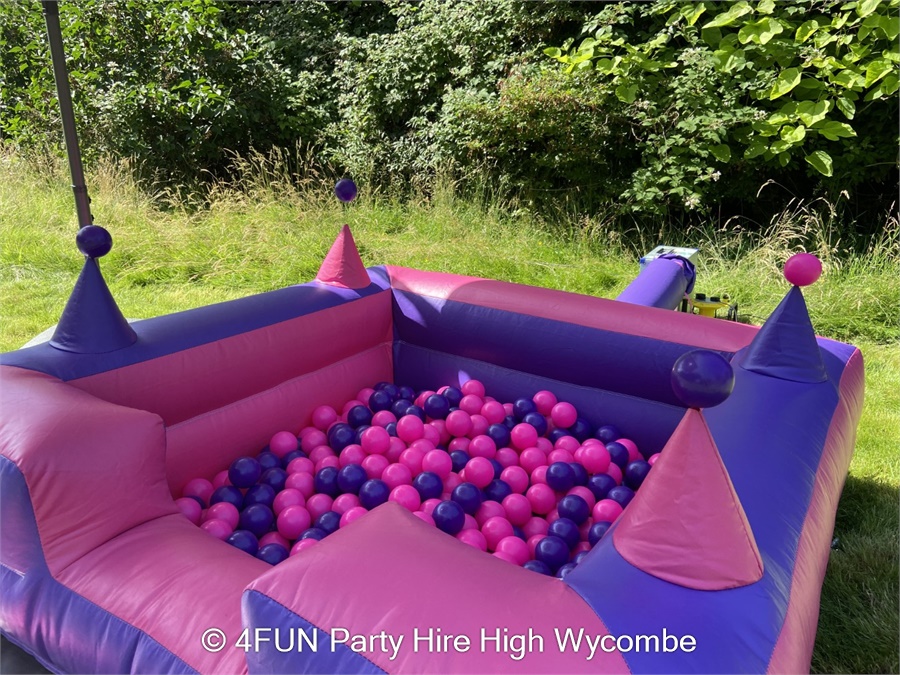 Inflatable Ball Pond (Pink and Purple) with Balls and Air Jugglers for hire in Buckinghamshire, Berkshire, Middlesex and Oxfordshire.