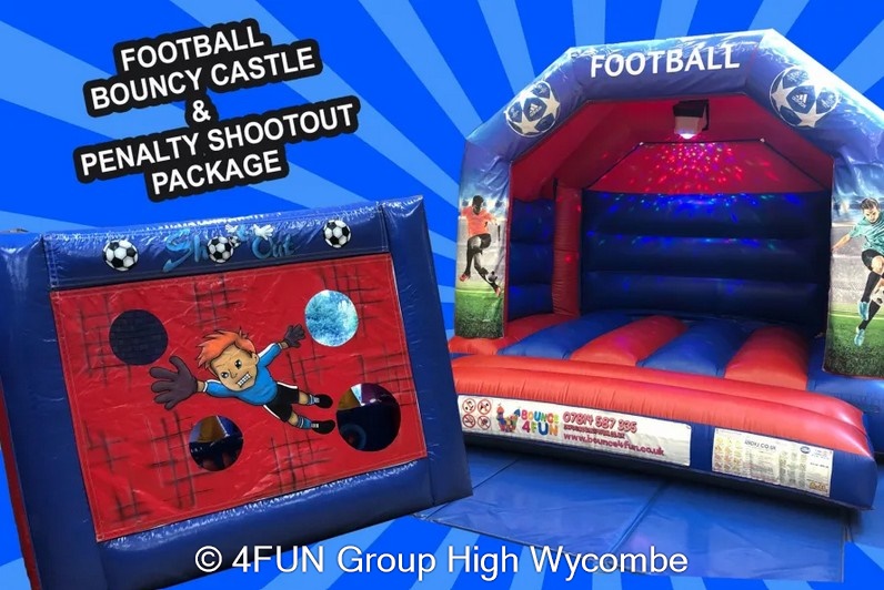 Football Bouncy Castle and FootBall Penalty ShootOut Package for hire in Buckinghamshire, Berkshire, Middlesex and Oxfordshire.
