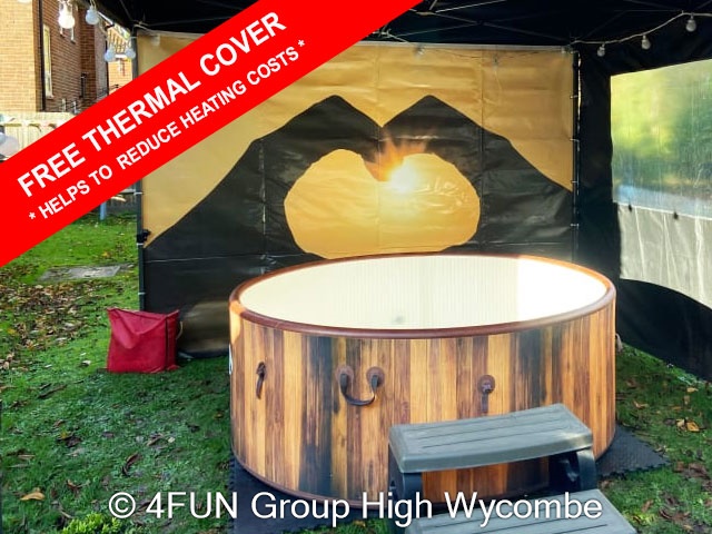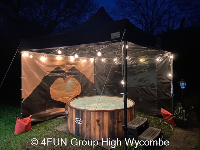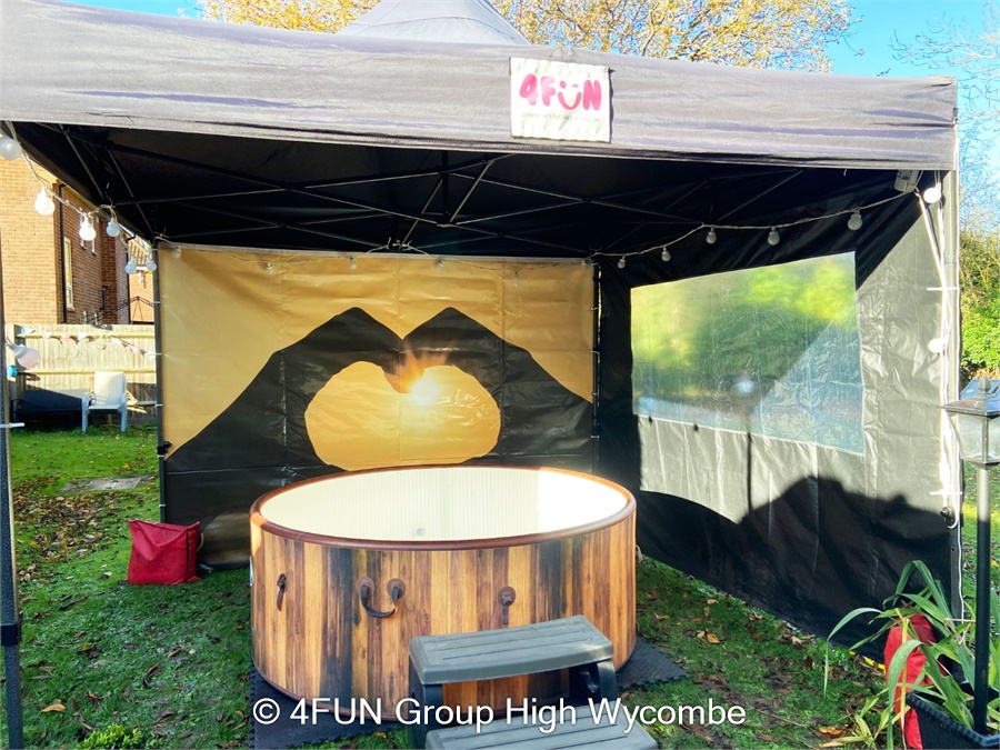 Heart Sunset Hot Tub and Gazebo Package for hire in Buckinghamshire, Berkshire, Middlesex, Oxfordshire.