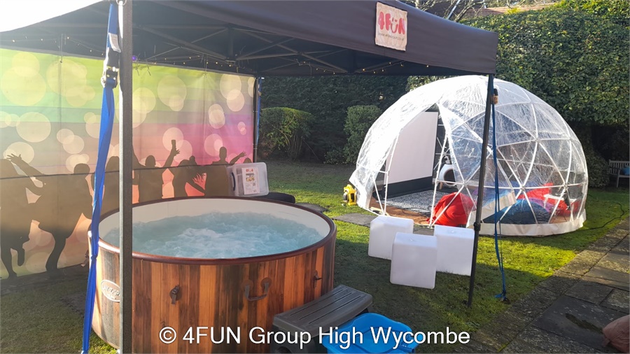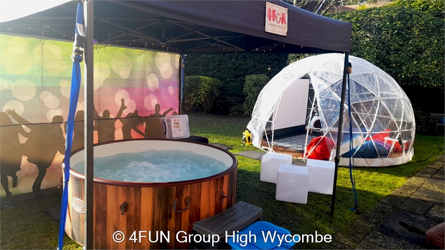 Hot Tub Igloo Dome with Cinema Package for hire in Buckinghamshire, Berkshire, Middlesex, Oxfordshire.