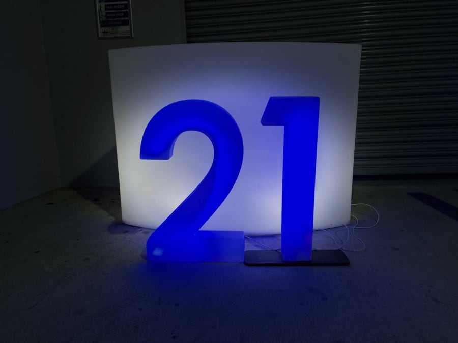 LED Light Up Number 21 for hire in Buckinghamshire, Berkshire, Middlesex and Oxfordshire.