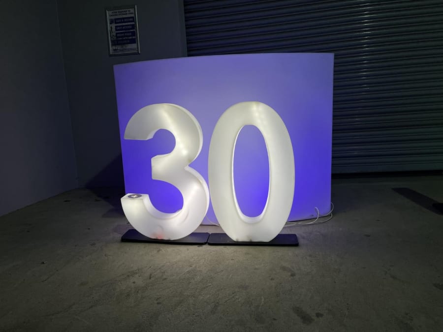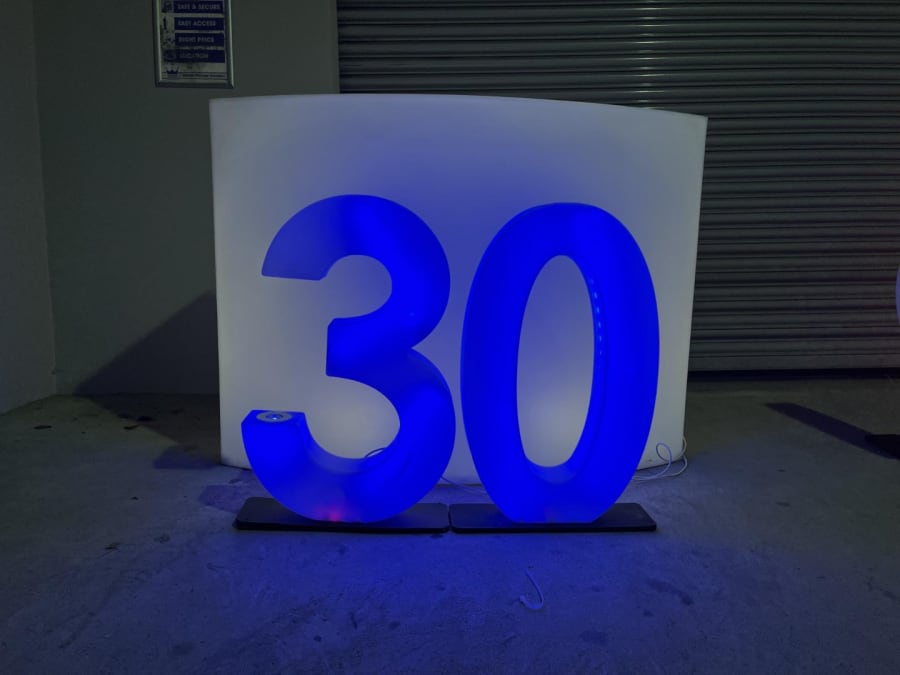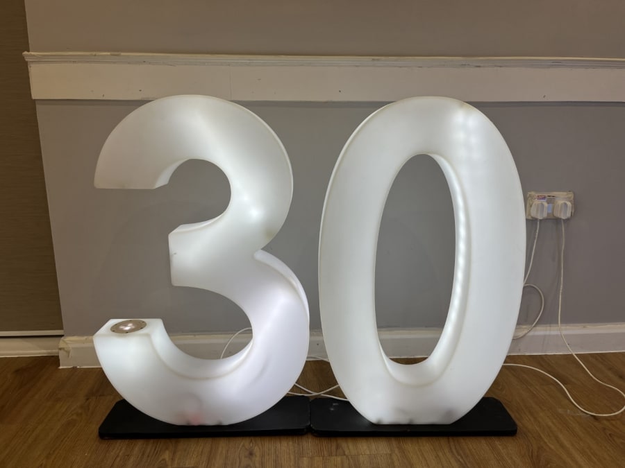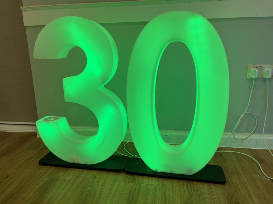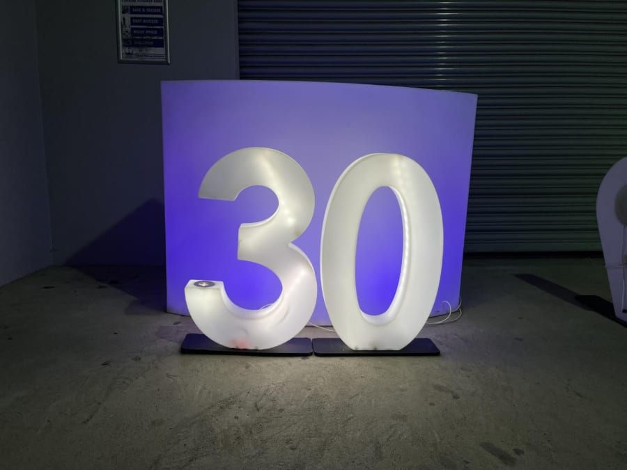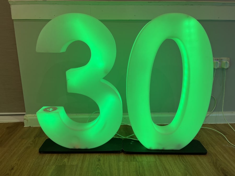 LED Light Up Number 30 for hire in Buckinghamshire, Berkshire, Middlesex and Oxfordshire.