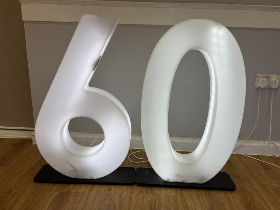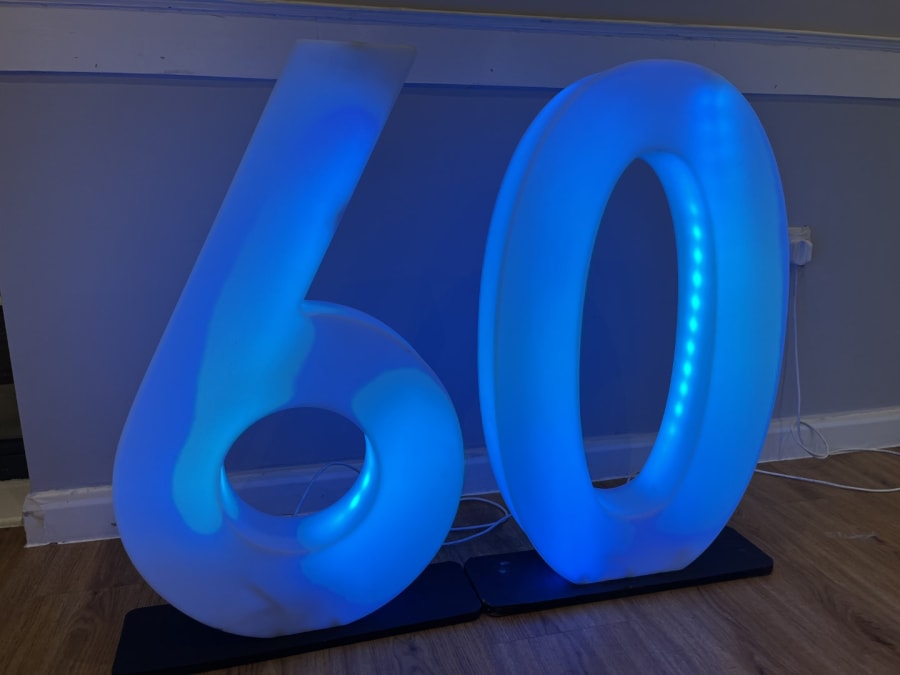 LED Light Up Number 60 for hire in Buckinghamshire, Berkshire, Middlesex and Oxfordshire.