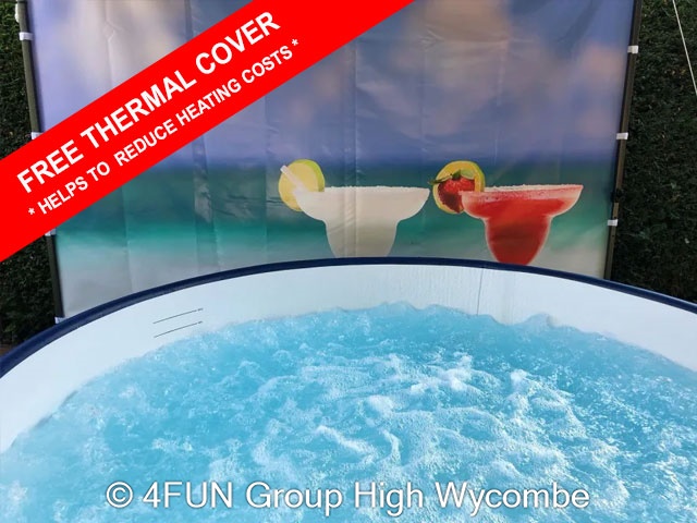 Martini Cocktails on the Beach Hot Tub and Gazebo Package for hire in Buckinghamshire, Berkshire, Middlesex, Oxfordshire.