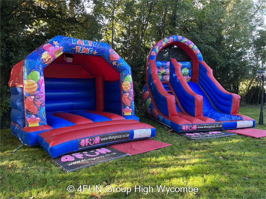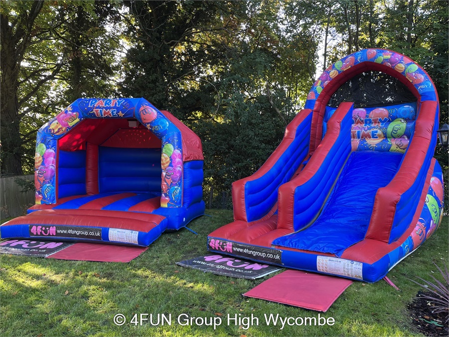 Party Time Slide and Bouncy Castle Package for hire in Buckinghamshire, Berkshire, Middlesex and Oxfordshire.