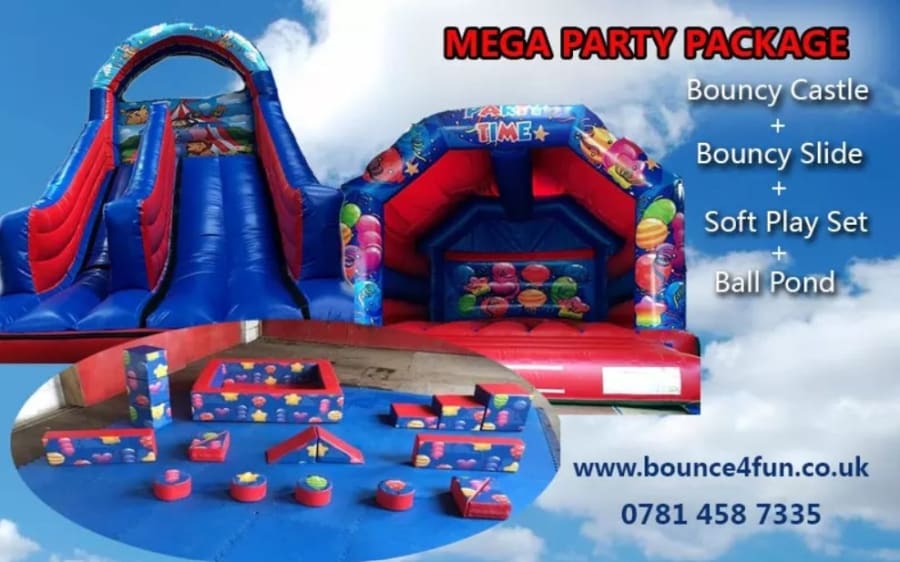 Party Time Bouncy Castle, Inflatable Slide and Soft Play Package