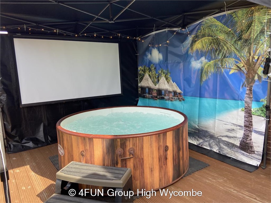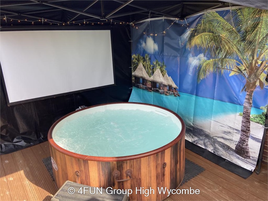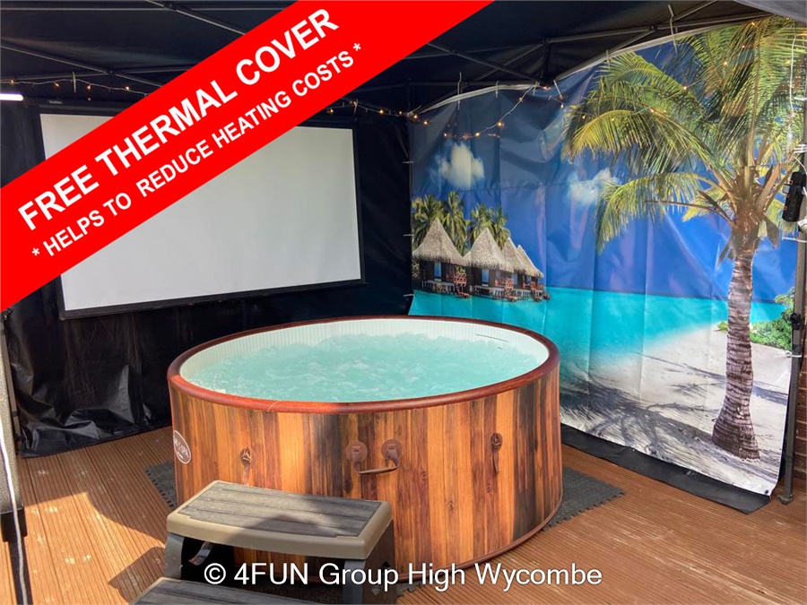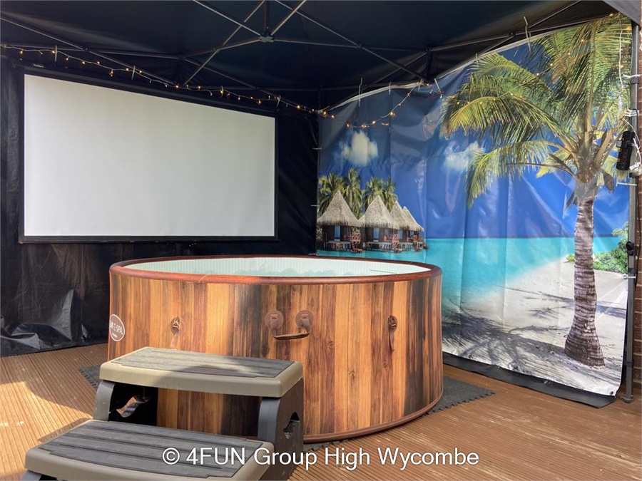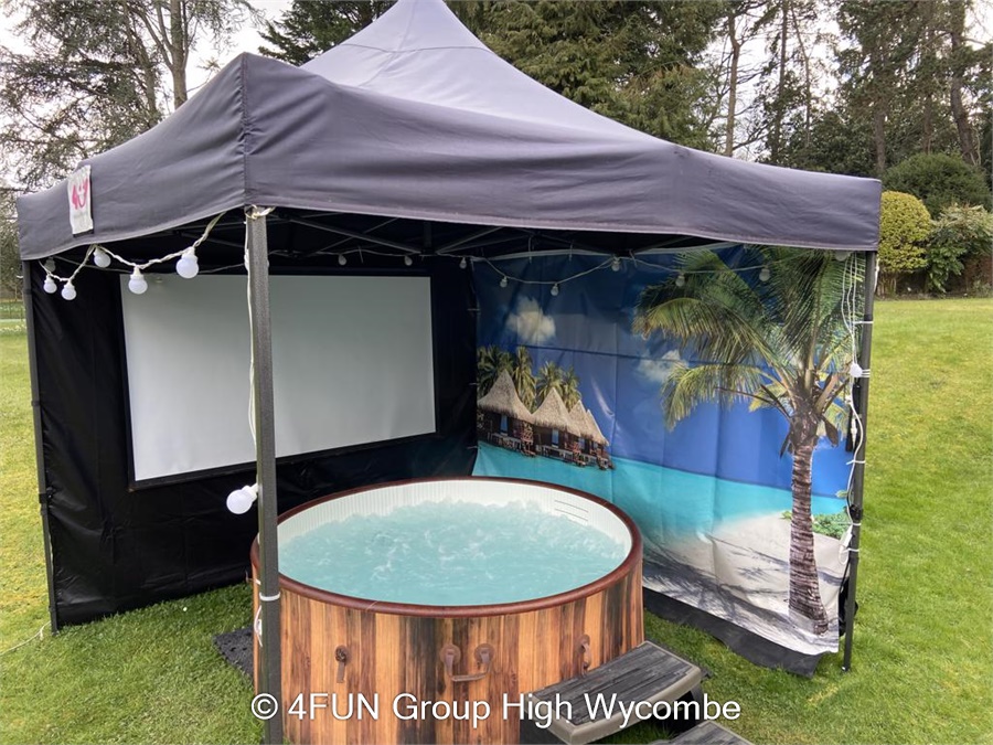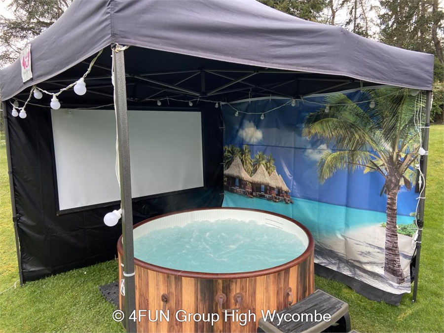 Tropical Maldives Hot Tub and Gazebo Package for hire in Buckinghamshire, Berkshire, Middlesex, Oxfordshire.