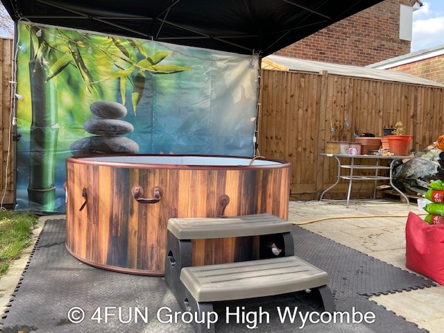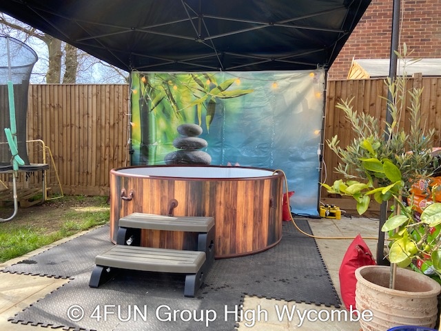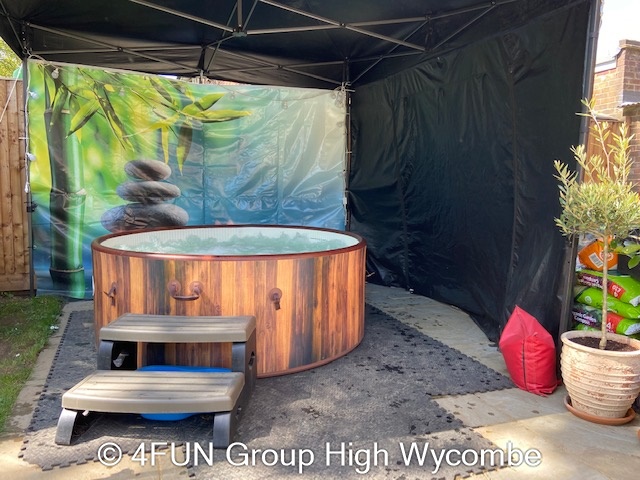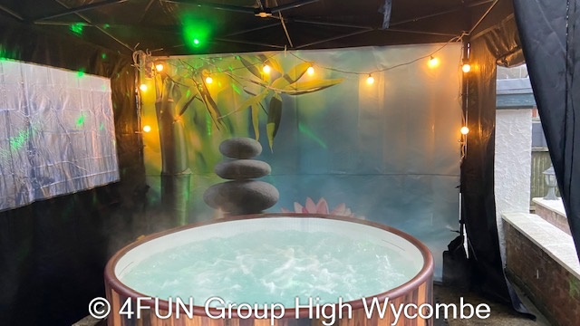 Zen Stones Relaxation Hot Tub and Gazebo Package for hire in Buckinghamshire, Berkshire, Middlesex, Oxfordshire.